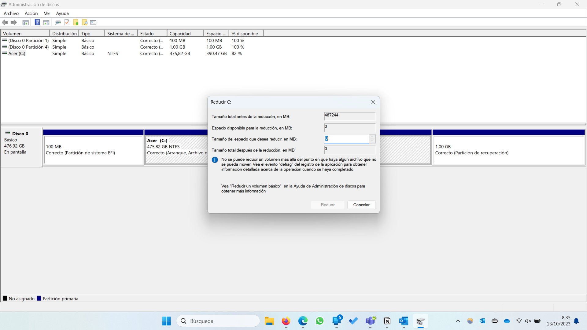 Teño un problema ao reducir o volumen da partición do disco. Restaurei Windows, desfragmenté e optimicé o disco, pero aínda non podo reducir o volumen da partición máis duns poucos mbs. Poderías axudarme?
